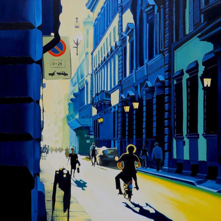 Another key theme in my work is what I call 'Moments': depictions of brief seconds when our surroundings reveal their full beauty, before they quickly fade back into the 'normal' routine of everyday life. These 'Moments' are something truly special. They are rare to experience, but when they do occur, you feel the urge to capture them instantly, on canvas or another medium, for eternity.